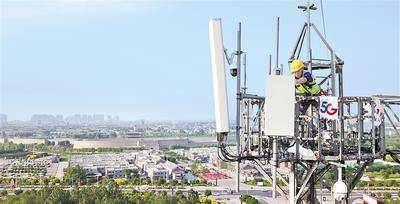 日前,中国电信正定分公司技术人员在正定南城门附近一处铁塔上调试5G基站天线单元。目前,中国电信、中国联通、中国移动以及河北广电网络的5G网络已在正定全面布局。预计6月底,正定城区将实现5G网络全覆盖。