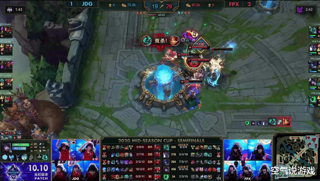 北京时间5月30号,2020英雄联盟季中赛冠军杯半决赛第一场比赛FPX与JDG相遇,LPL赛区的内战在半决赛上演,BO5首局采用特殊的盲选模式,没有BAN人阶段,可以使用重复英雄。FPX在输掉第一局之后,让一追三,最后3:1拿下比赛,成功复仇宿敌JDG。也拿到了决赛的入场券。