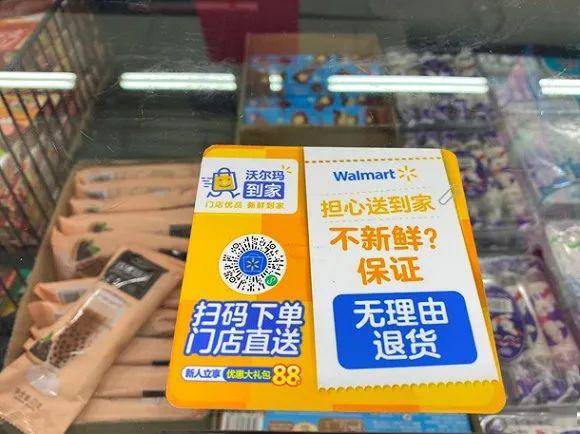 沃尔玛卖场冷柜上的小程序下载宣传。拍摄:赵晓娟