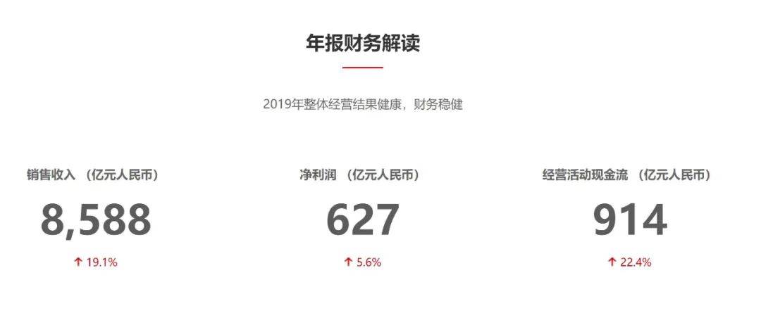 根据华为2019年年度报告,当年实现全球销售收入8588亿元人民币,同比增长19.1%,净利润627亿元人民币,经营活动现金流914亿元,同比增长22.4%。全年出货2.4亿部手机,虽然不如3亿部的年度目标,但来之不易。