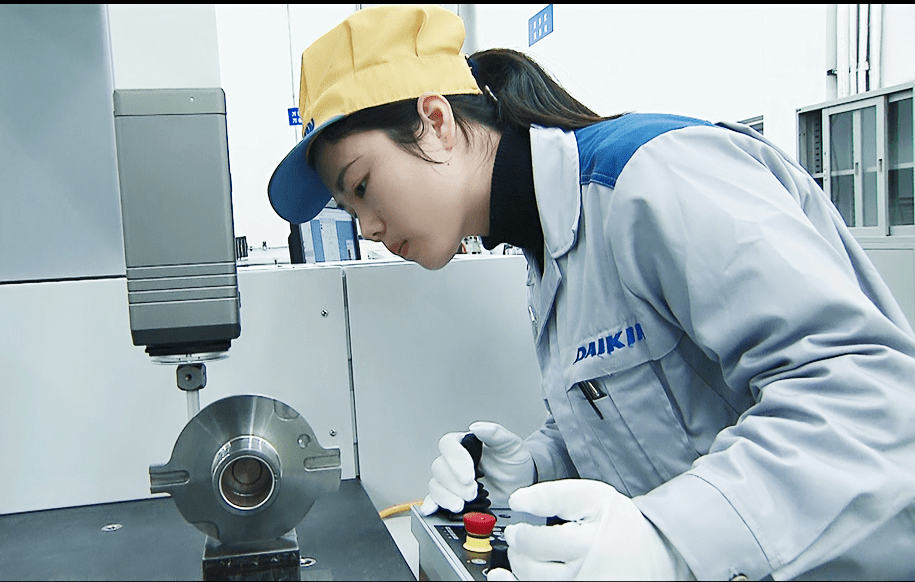 强调人的重要性尽管自动化生产发展到今天,大金在空调的生产制造中,很多环节依然离不开人工。为了成本可控和品质保证,制造马达所需的铜线和铁芯均由大金空调生产制造,前者需要精准控制铜线的粗细、硬度、柔软度以及伸缩率等,有助于积累生产马达的卷线技能;后者为了高速度、高精度进行冲压作业,需要具备模具保养技能。