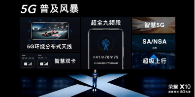 荣耀X10在5G方面能全方位完爆红米10X Pro,体现了荣耀X10强劲的驻网能力,保障信号的稳定性,而红米10X Pro5G驻网能力差,导致信号波动很厉害,有些情况下更是直接掉到了4G网络。为了保障信号的稳定性,荣耀X10可谓下足了功夫,采用1T4R天线组合,即一根天线用于发射,四根天线用于接收,相比1T2R,天线数量增加了一倍,拓宽了手机与基站之间的“高速公路”,提升5G体验速率。荣耀X10的天线还采用环绕分布式设计,结合用户不同场景手持握姿大数据的调研和分析,重构了荣耀X10的天线设计与分布,实现天线在极小空间下有效激励起手机的不同模式信号强度,进一步提升横屏体验。相比上一代,荣耀X10天线信号强度提升20%以上。