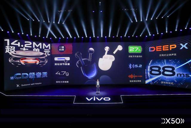 除此之外,随vivo X50系列共同发布的还有vivo TWS Neo真无线耳机,主打好音质、低延迟。14.2mm超大单元可以带来更加澎湃的音质效果,88ms超低延迟不仅刷新业界标准,更能让用户在游戏体验中真实感受低延迟的效果。同时,vivo TWS Neo真无线耳机还具备aptX高清解码、27小时超长续航、一键闪连、双重佩戴检测等诸多卖点,具备重新定义真无线耳机的强大性能。