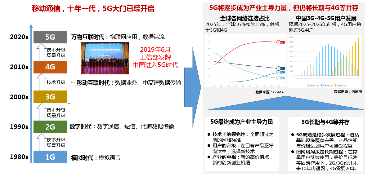 通信行业基本保持10年一代的发展速度,但走到5G时代出现了一些微妙的变化。差别主要表现在两个方面,1G到4G全世界都走在我们前面,这意味着我们每一次大规模网络提速,都已经有相关的经验。成熟的产业、核心的商业模式都有人做了非常大的探索,我们拿来就可以用。但5G我们和全世界同时起步,前后只差个把月。这意味着没有人在前面,我们要单独面对可能出现的问题。