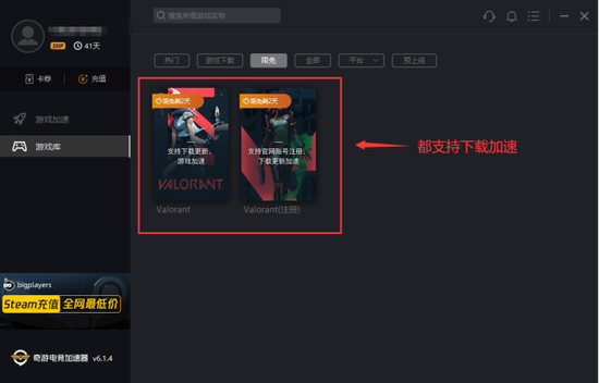 用奇游加速器加速“Valorant(注册)”分区,如果遇到无反应情况,换个浏览器就能解决,我推荐用QQ加速器;