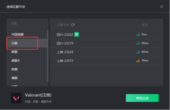 安装完毕后先重启电脑,确保加速器加速的区服和账号对应的区服是匹配的,优先选择日服,现在港服人多,可能出现网络问题(选日服就得重新申请日服账号哈):