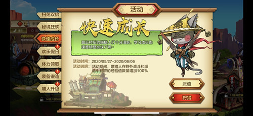 【活动内容】活动期间,喵猎人在野外战斗和派遣中获取的经验值数量增加100%!