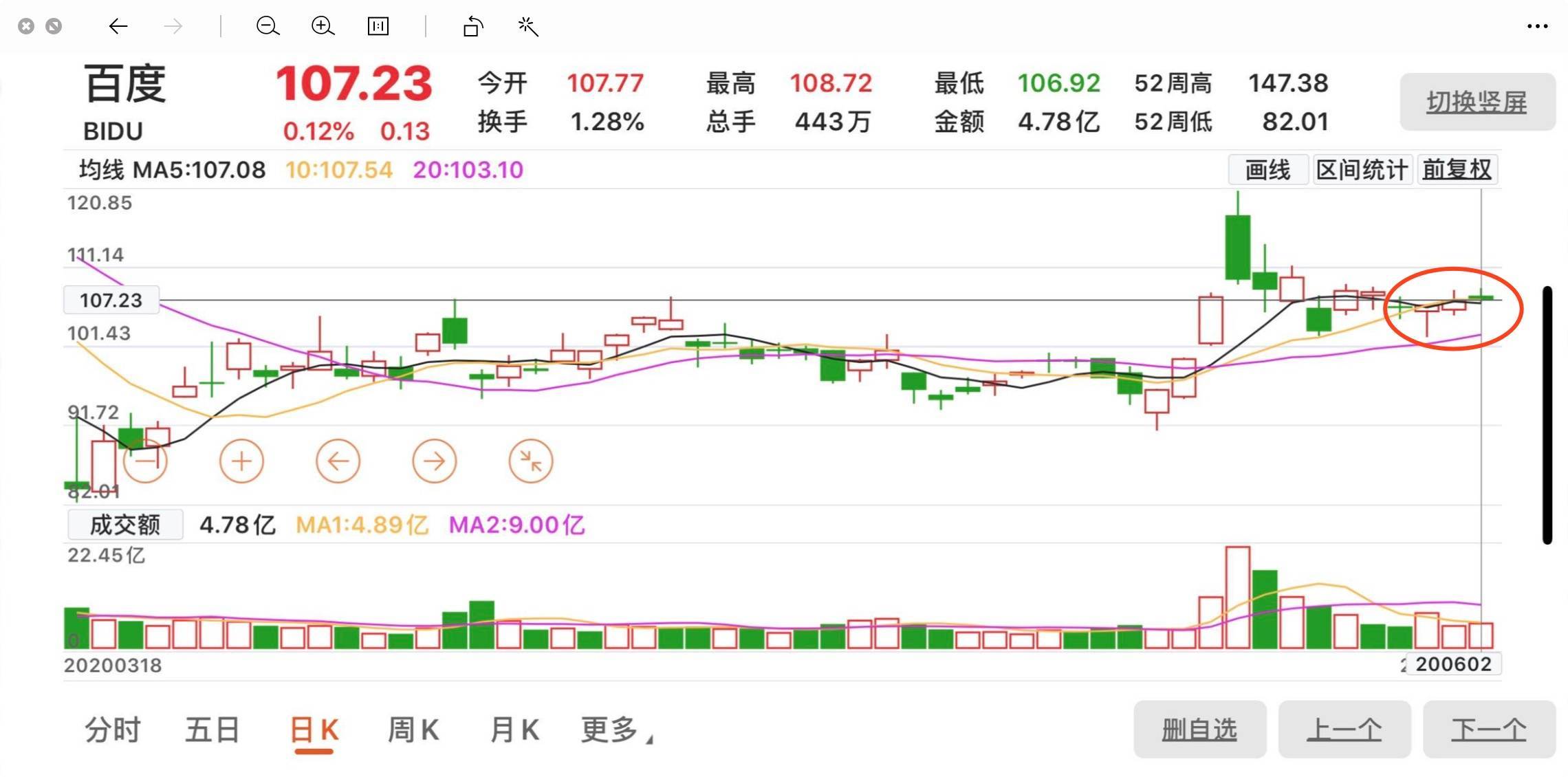 二级市场对这一消息似乎也并不买账,自百度重启本地生活服务以来,百度股价一直在0.6%之间的涨跌幅中徘徊,截至6月2日,百度收盘价为107.23美元/股。
