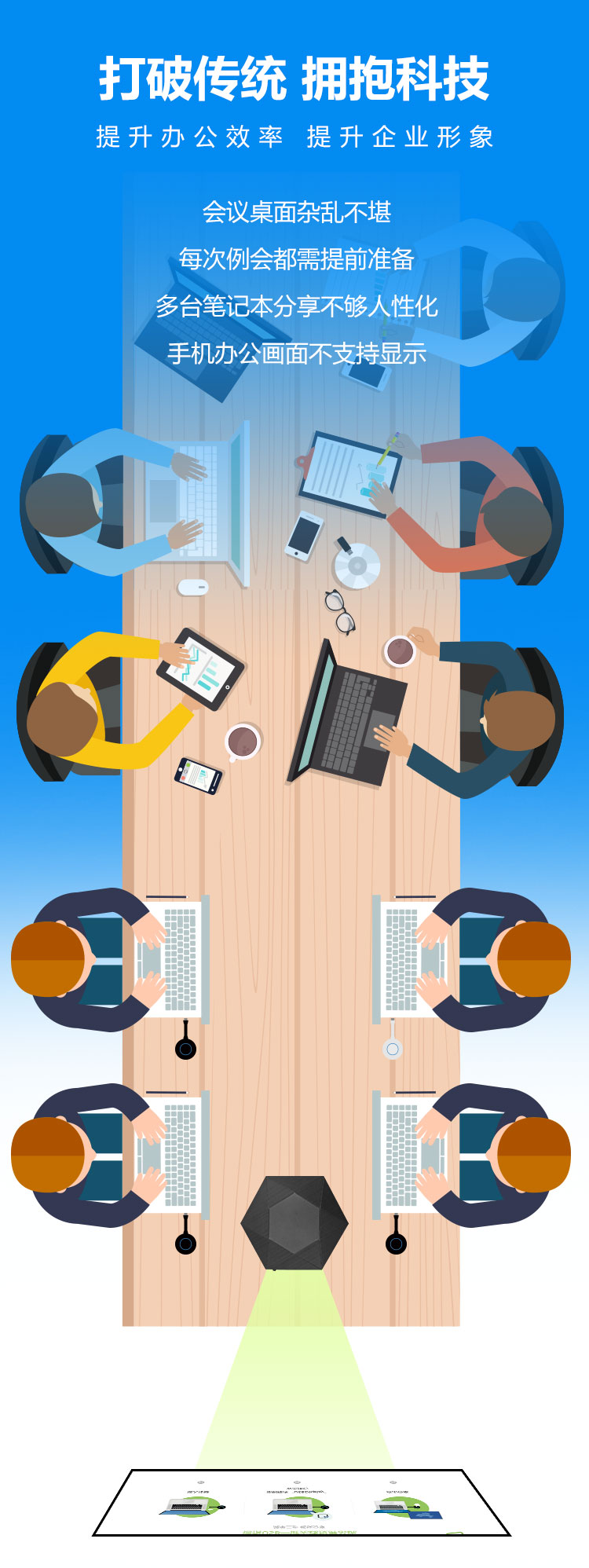 接在笔记本电脑USB接口的是上图的USB传屏按键,还有一类会议状况,小编想必大家也都遇到过,在多人参与的会议中,每个参会人员都带了自己的笔记本电脑,一次需要分享展示自己的PPT,在资料讲解过程中,可将多支个USB按键分别插入到各自的笔记本电脑中,哪台笔记本需要投屏显示的,只需轻轻按一下USB传屏器,即可实现投屏,后按的可自动替代原先投屏显示的笔记本内容。下面这个视频,相信您看了过后,就会对小编刚刚描述的场景感同身受了: