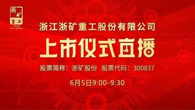 浙江浙矿重工股份有限公司以圆锥破碎机、颚式破碎机等大型矿山机械设备为主导产品,是集绿色、智能矿山机械设备的开发、生产、销售和售后服务为一体的综合性企业,能实现成套设备及其智能化管理系统等整个产业链核心装备的自主研发和生产制造工作。浙矿股份于2020年6月5日登陆深交所创业板上市交易,全景网将对上市仪式全程直播,敬请关注。