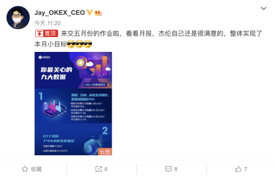 据OKEx CEO Jay Hao微博显示,OKEx衍生品交易量在五月中实现了全线增长,整体涨幅超24%。产品优化及系统升级29次,并完成永续合约、OKEx Jumpstart、现货等产品线的11次上新动作;帮助246名用户,找回价值86.31BTC的充错资产;冻结OTC可疑账户229个,保证用户资金安全;风险准备金累计金额105,747,792USD,永续合约自上线至五月底,531天全程零分摊。