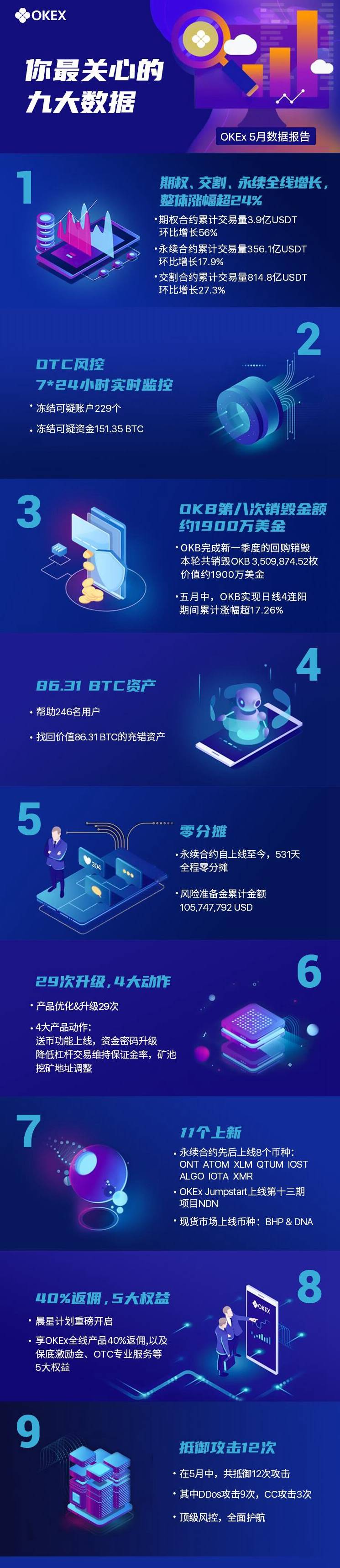 原标题:OKEx发布五月数据报告:衍生品交易量全线增长 合约持续零分摊