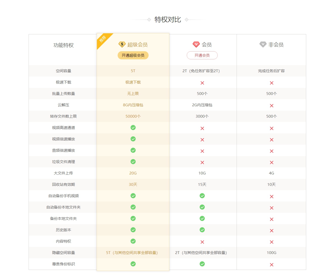 成为百度网盘超级会员可谓好处多多,除5T超大空间和极速下载体验升级外,超级会员用户还可享受云解压、超大文件上传、视频倍速播放等超多尊享特权,可完美覆盖在线学习、远成办公以及娱乐生活等多种场景。无论是面对实时资料备份、资料同步、资料分享以及资料在线编辑等使用需求时,用户都可获得更便捷、安全、可靠的使用体验。