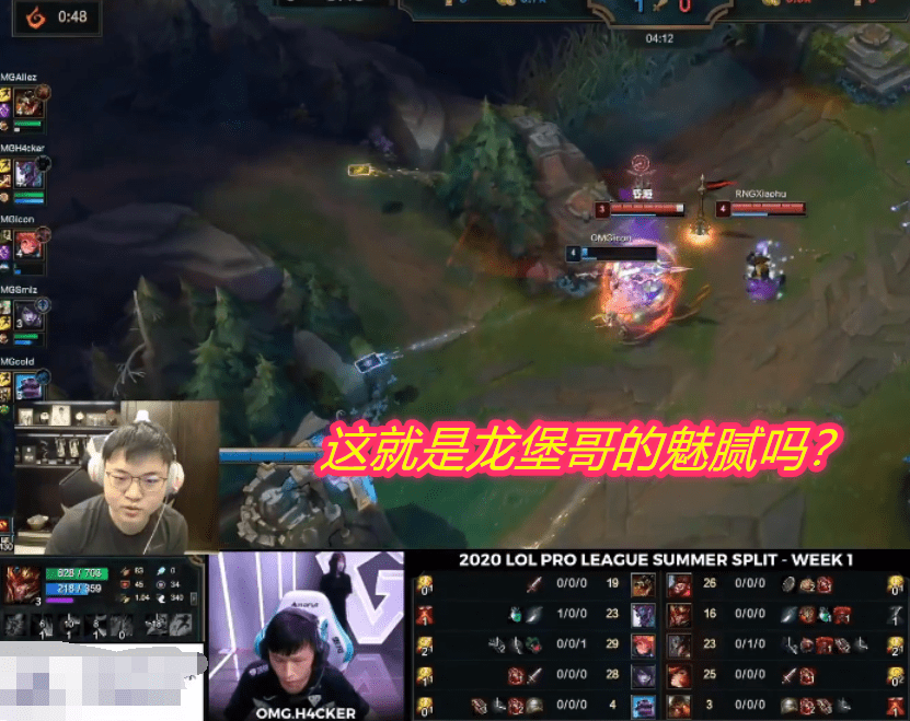这一局游戏RNG在前期的时候犯了一点小失误。小虎的卡牌因为操作上面的一些瑕疵,在第一局的时候被抓死了。不过后续小龙堡找对了节奏,来到了中路抓住了冷少,惹得Uzi也说出了:这就是龙堡哥的魅腻吗?可以看得出来,小龙堡在这一局比赛中打的是非常的亮眼,不管走到哪里都有人抓。
