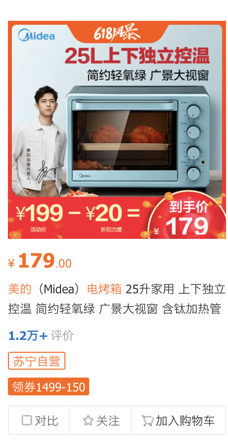 美的电烤箱,京东券后价99元!——真香!什么概念,三杯买咖啡的钱,就拿回家一台名牌烤箱!苏宁,同款产品折扣之后依然179元。这价格说吊打不过分吧?