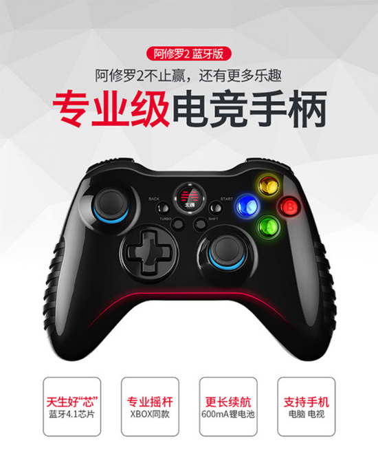 北通阿修罗2蓝牙版游戏手柄,配备了赛事级电竞摇杆、进口蓝牙芯片。苹果、安卓、PC适配多平台一柄通杀。