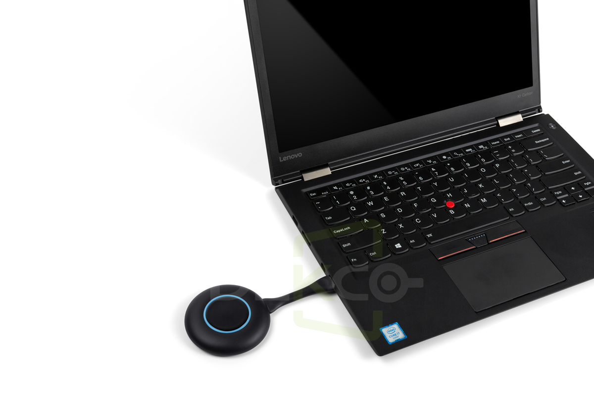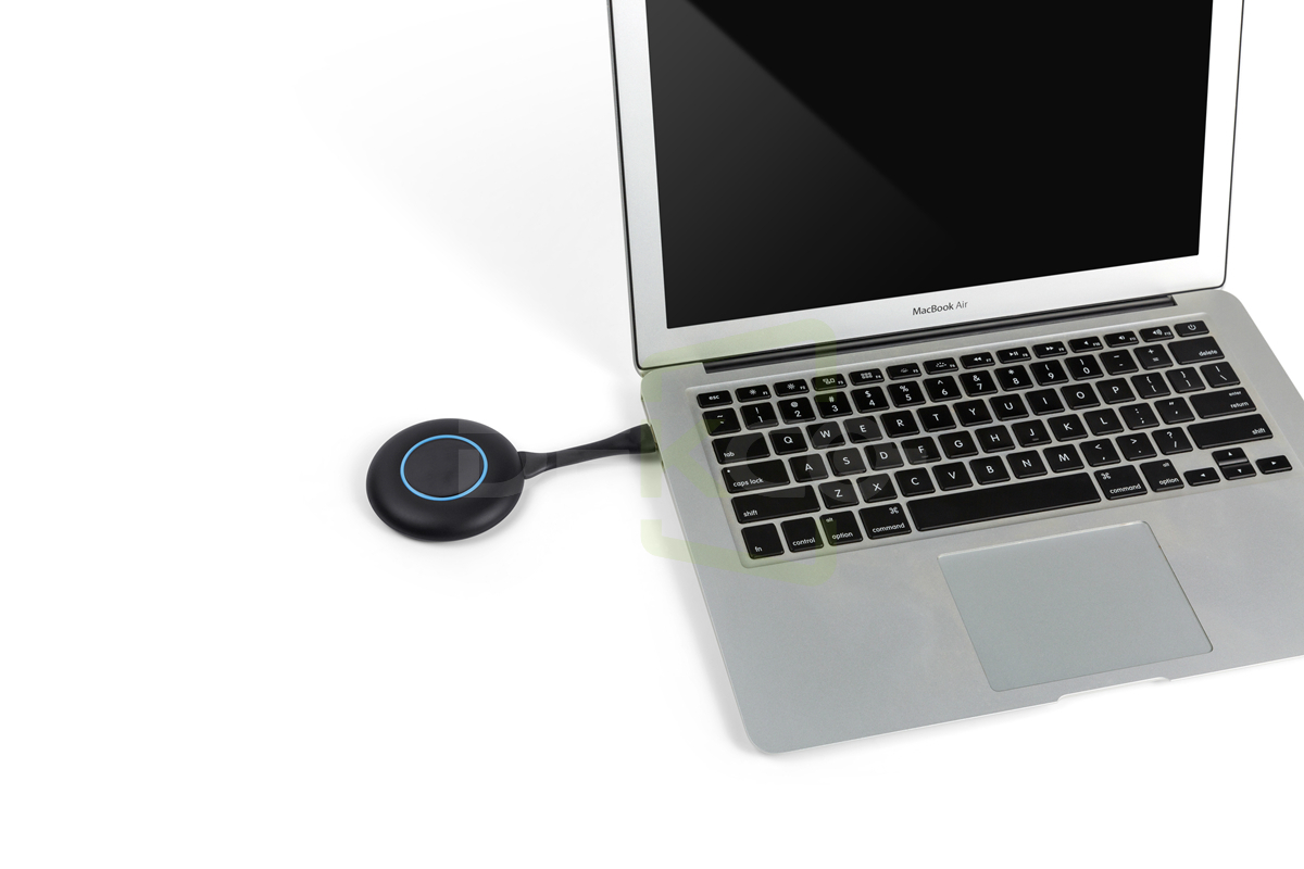 上面的实操视频中,大家可以看到,笔记本电脑在会议室无线投屏的过程中,笔记本电脑与电视之间并没有连接信号线,而是在笔记本的USB接口插入了一支圆形状的按键,我们叫“USB投屏按键:使用起来非常简单,不需要做任何设置,不需要安装任何软件,也不需要连网,只需简单三步即可完成无线投屏展示。