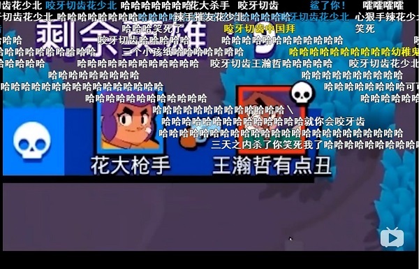 不过短短几秒钟,提示栏就显示花少北使用的角色雪莉将中国boy使用的柯尔特击杀,节奏非常快,花北少扯着大嗓门各种调侃“瀚哲,你怎么一碰就碎呢!”