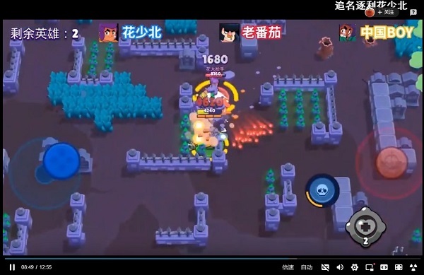 老番茄使用蛮牛躲在草丛里,准备埋伏一波花少北,可惜操作失误未能一次击杀对方,此刻的花少北已经愈战愈勇,立马开始夺命反击,使出雪莉的超级技能一枪击毙老番茄获胜,网友纷纷刷屏“无情花少北,果真心狠手辣”,笑料十足。