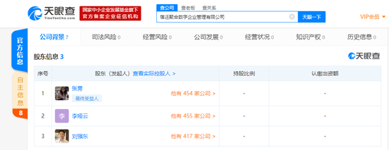 天眼查股东信息显示,目前,该公司共有3位股东,分别为刘强东、张雱和李娅云。