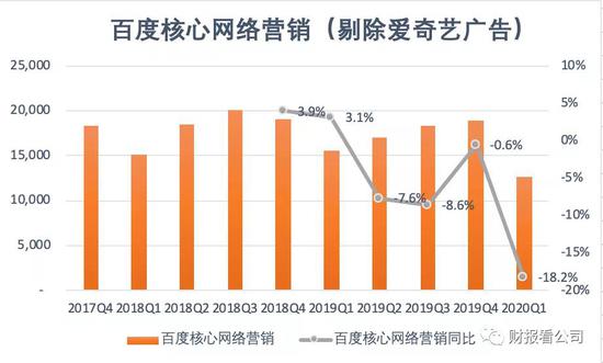 剔除爱奇艺在线广告的影响之后,百度核心网络营销的下降幅度略有减缓。