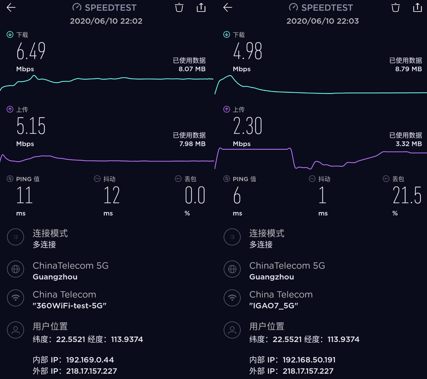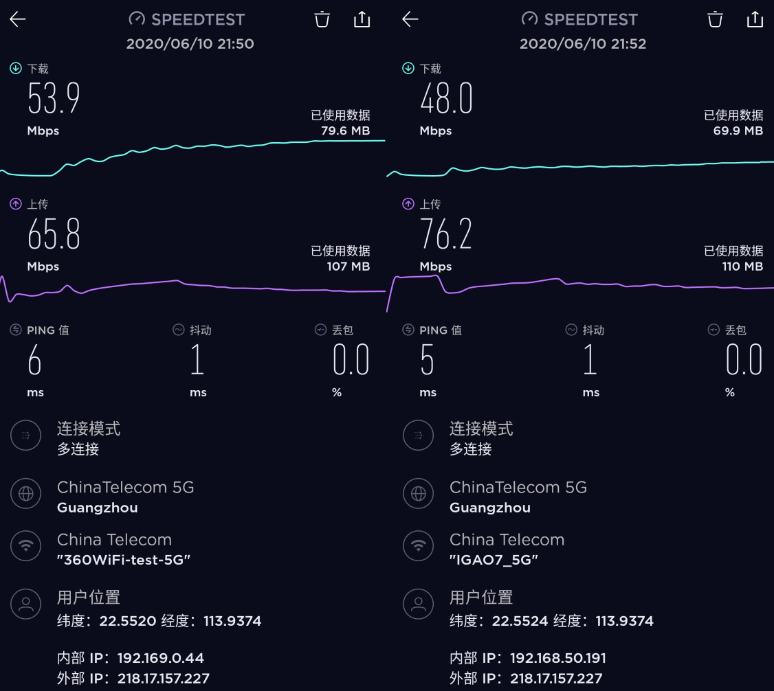 总的来说,信号覆盖和速度上,360WiFi6全屋路由已经能和发射功率更大的梅林固件打个有来有回,老旗舰即便都在 ping 值和抖动控制好,但无奈 WiFi 6 真的香,实际连接速度始终要压一头。对于有 NAS 或者平时用本地 FTP 用户,WiFi 6 完全可以代替网线了。