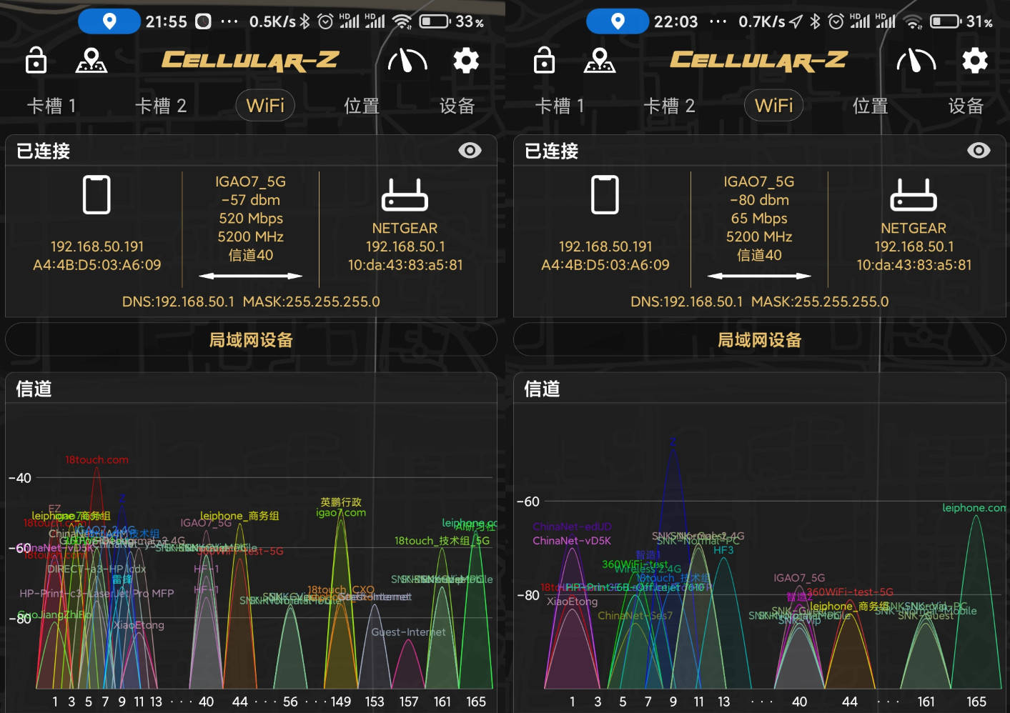 信号方面,360WiFi6全屋路由竟然比发射功率更大的梅林固件 R7000 (WiFi 名为 IGAO7_5G)还强一些,气氛突然尴尬……