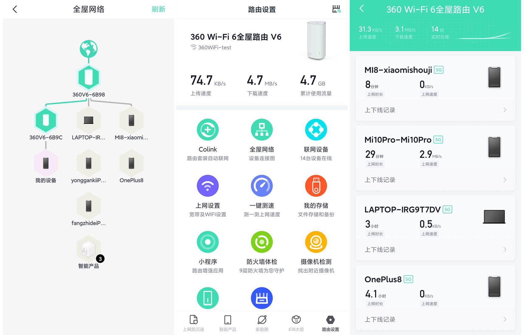 实际 Mesh 组网体验,得吹一下360的智能设定: