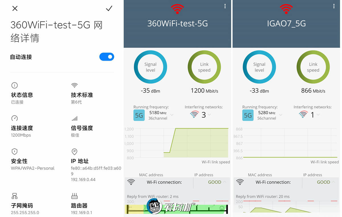 360WiFi6全屋路由的 5G WiFi 和 2.4G WiFi、R7000 的 5G WiFi 连接速度