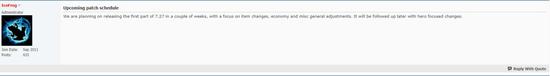 我们计划在几周后放出7.27版本的第一部分,这一部分将侧重物品、经济以及通用性改动,在第一部分发出之后,会有英雄方面的改动跟上。