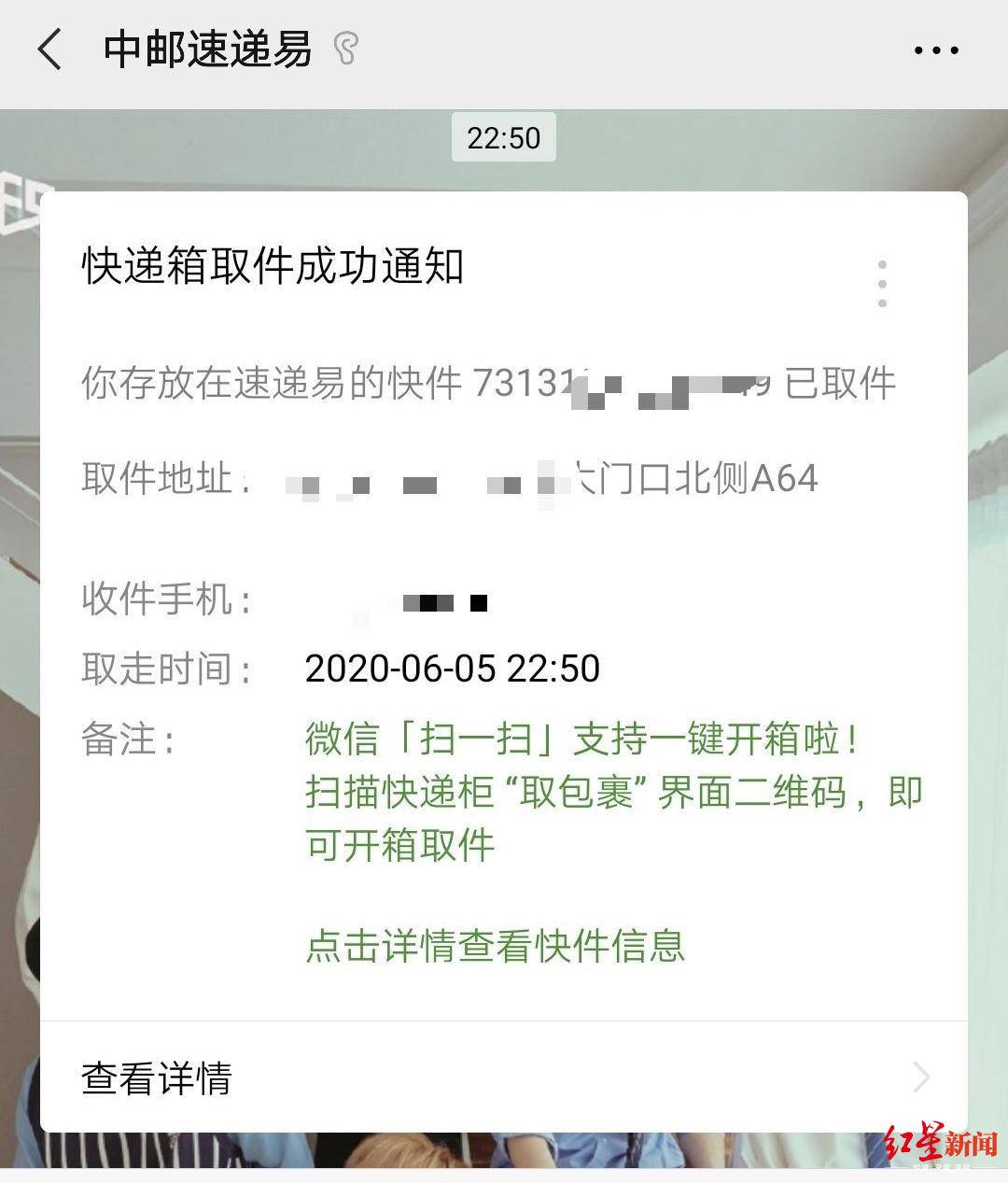 一网友支付了两元取件成功