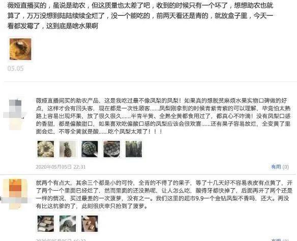 在综艺节目《向往的生活》组织的一场公益带货中,尽管薇娅很快卖空了农产品,但收到货的消费者并不满意,个头参差不齐、甚至出现坏果。6月3日,李佳琦直播销售的一款唐家饼蛋黄酥,也被指与展示货品差距巨大。