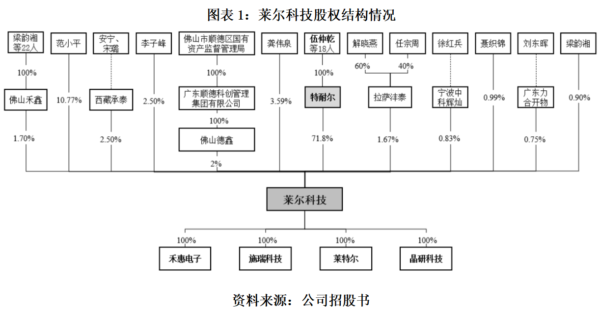 莱尔科技的前身是莱尔有限,成立于2004年4月,2017年10月整体变更为股份有限公司。截至招股书签署日,该公司的控股股东为广东特耐尔投资有限公司,实际控制人为伍仲乾。