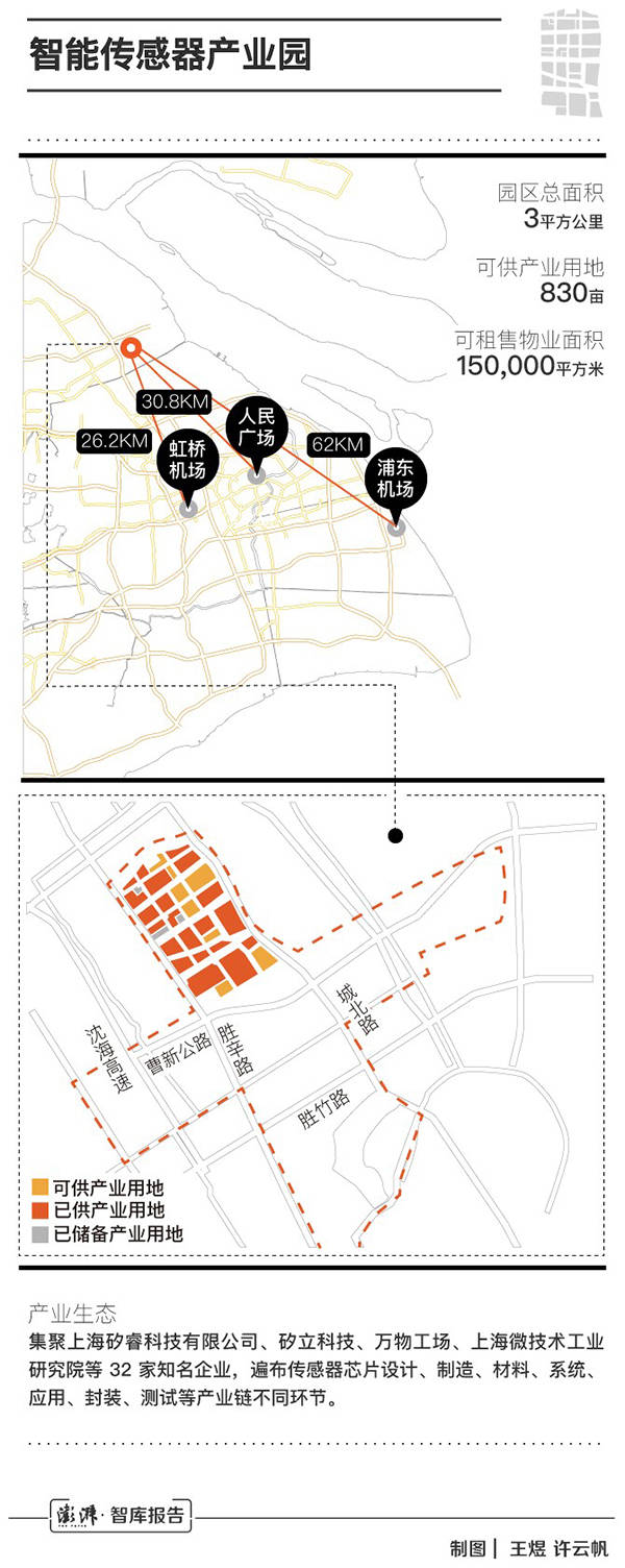 上海智能传感器产业园作为上海市集成电路产业“一体两翼”布局中的“一翼”,于2019年12月24日启动。当时即有32家企业签约入驻,总投资额248亿元;同时《关于嘉定区进一步鼓励智能传感器产业发展的有关意见》发布,预计到2025年,嘉定区以智能传感器芯片为核心的智能硬件相关产业产值将突破千亿元,使其成为上海、长三角乃至全国的传感器及智能硬件产业高地。