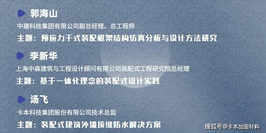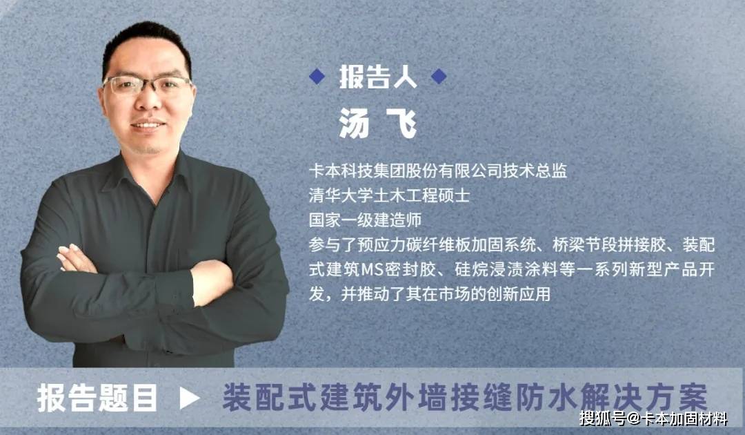 主讲内容:本次报告以“装配式建筑外墙接缝防水解决方案”为主题,由装配式建筑切入,通过介绍其国内外发展现状、优点及相应结构,明确装配式建筑外墙防水对其的重要性。从而提出装配式建筑用防水密封材料选择的方法及要求。此外,报告还将针对卡本的一站式解决方案结合相关装配式建筑案例与大家进行分享,从而与行业同仁探讨交流。