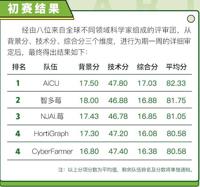 6月24日,经过为期一周的激烈角逐和专家评审后,第一届“多多农研科技大赛”初赛结果出炉,在参与初赛的17支科技组队伍中,共有4支年轻队伍脱颖而出,分别是AiCU队、智多莓队、NJAI.莓队、CyberFarmer·HortiGraph队。