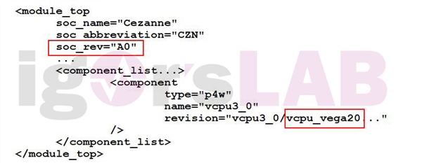 Van Gogh目前也是处于A0步进阶段,预计会和Cezanne U/H系列同时发布,老规矩了,但注意图中代码里的Vega 20、Navi 21,不代表它们分别有20个、21个计算单元,只是在APU上使用了不同的数字编号而已。