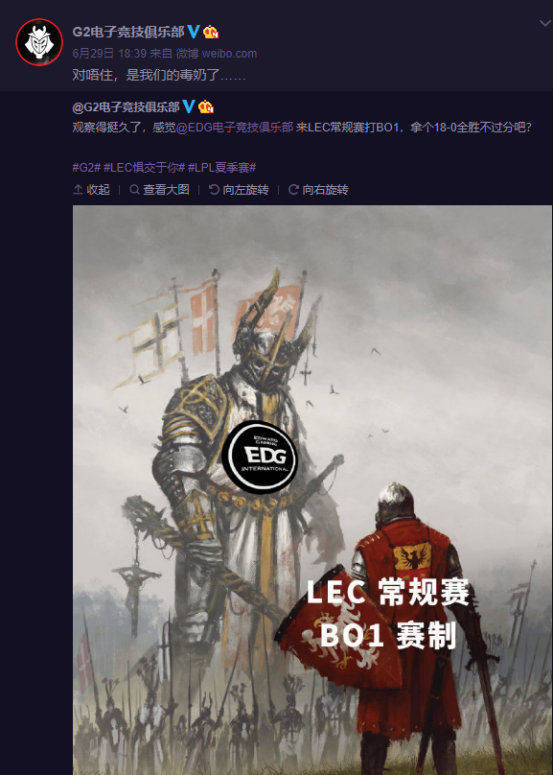 很少有人知道,在EDG昨日战败DMO之前,EDG一直保持着一个冷门数据,那就是LPL夏季赛首场对局100%胜率,所以EDG上演了N次的经典“追1让2”,一场取胜然后2连败结束。然而EDG和DMO对战直接被零封,此战不仅终结了第一场100%胜率,而且突破了EDG的下限,经理阿布在直播解说中气得头皮发麻,怒斥EDG打的完全是“青训水平”,一度气到不想说话。而G2战队因为一直在高强度研究LPL对手,更是因为之前微博整活邀请EDG去LEC打常规赛BO1拿18全胜,结果28号刚整活完,29号EDG直接被2:0了,G2赛后也是直接主动站出来背锅,
