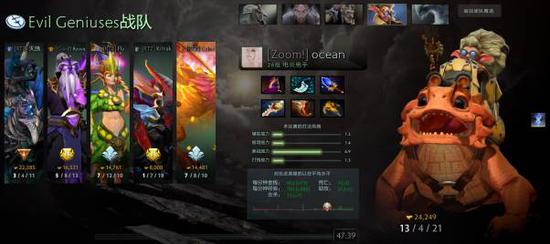 败者组连斩TP和CR4ZY后,决赛日的EG和4 Zoomers再度相遇——本以为这会是EG的复仇之战,但新版本的到来却让擅长小节奏的4 Zoomers如虎添翼。BO3的第二局,4 Zoomers的四号位选手Oceania操刀老奶奶——有大扔大,没大猛抽凤凰蛋,手握13个人头的A杖老奶奶给EG造成了致命的麻烦。大后期的对决,老奶奶一个大招炸死了EG的两个酱油。最后时刻,Oceania还从RTZ手中夺走了一把圣剑。二比零,4 Zoomers将EG拦在了总决赛的门外。
