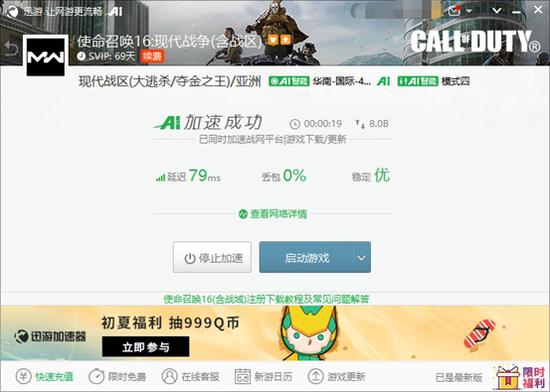 因为本次下载比较大,许多玩家直呼硬盘容量不够装,最重要的是下载速度过慢,不过不用担心,迅游加速器支持下载加速。在迅游加速器客户端选择“使命召唤16”进行加速之后就可以有效提升游戏的下载速度。并且迅游加速器支持游戏加速,加速之后超低延迟秒进线上,用迅游加速之后流畅战斗吧。