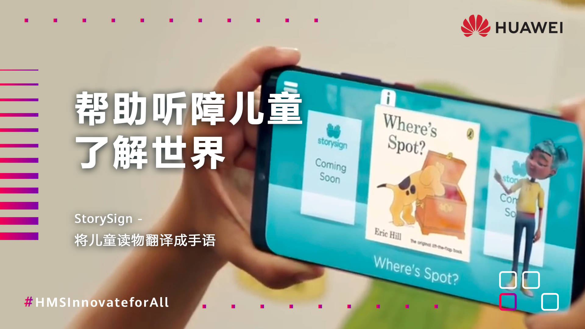 在欧洲,华为联合非营利组织“欧洲聋哑人联盟”(European Union for the Deaf)、Penguin和动画巨头Aardman联合开发了免费的阅读手语转译软件StorySign,将精选儿童经典读物转译为手语,让手机成为听障儿童手语学习和阅读识字的最佳搭档。