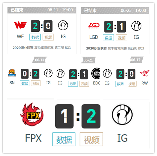 在此之前,IG一共是经历了六场BO3,战绩是四胜二败。