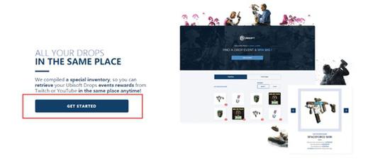 2。加速之后复制网址到浏览器打开进行账号绑定操作:https://drops-register.ubi.com/;进入网址之后点击按钮GET STARTED;