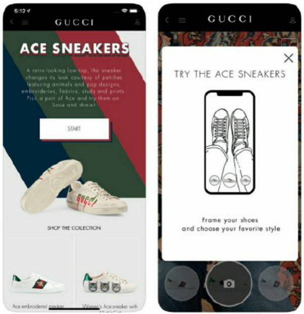 这并非Gucci首次推出尝试虚拟试穿的功能。2019年6月,Gucci曾在其iOS的版本更新中加入了AR试穿功能,用户能够借助智能手机摄像头采集脚步信息从而实现Ace运动鞋的试穿过程。而这次与Snapchat的合作是由一家叫做Wannaby的科技公司为脚步追踪提供技术支持的。