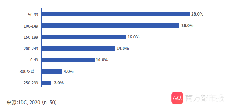 而卞海军指出,“人才的短板是现在城商行、农商行急需突破的,在区域城市很难招到这样的人才,短时间内很难解决掉。所以我们建议采用跟科技企业共建的方式解决这个问题。”IDC调研数据也印证了这一说法,根据IDC对样本的调研发现,有38%的区域性银行信息科技部门自有人员的数量在100人以下,数量100人-200人约有42%,总体来看,区域性银行科技部门自由人才大多都在200人以下。