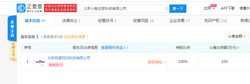 原标题:百度网讯科技全资入股小鱼在家,李开复等退出