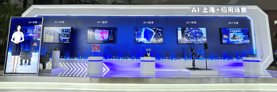 值得一提的是,商汤还在走廊中定制化打造了一座实体“数字人”展台,以“AI+应用场景”为主题,展现了AI技术在医疗、教育、文博、工业、科研五大领域的应用与落地。特别值得关注的是,展台上有一位特殊的数字人导览员“小糖”,是基于商汤创新的Avatar技术专属打造,可以生成惟妙惟肖的表情和动作,与观众问好互动。