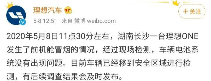 据《财经》此前报道,5月8日,湖南长沙路面上,一辆理想ONE发生自燃,整个车身前部烧焦。事故发生后一个小时,理想汽车官方发出公告:针对这辆理想ONE前机舱冒烟的情况,经过现场检测,车辆电池系统没有出现问题。