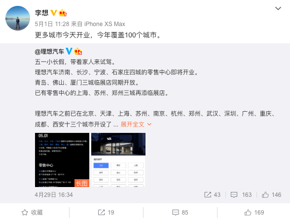 近日,理想汽车CE0李想表示,理想汽车计划在今年加快扩张速度,预计将在全国增设60家门店,以扩宽销售渠道。他表示,此举是为了拿到更好的供应商资源、用户资源以及媒体、渠道资源。按照规划,今年第三季度,理想汽车零售中心的覆盖城市将提升到30个城市以上,同时其售后服务网络也将在三季度内覆盖到除港澳台以外的所有省份,他们计划在年底前将渠道拓展至100个城市。