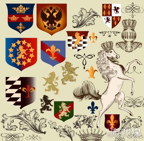 在纹章、纹饰上。狮心骑士团以及秩序之地的灰烬骑士团的纹饰参考15世纪中叶欧洲贵族的纹章体系,取自欧洲骑士们的盾牌上的纹饰,一开始是作为分辨敌我双方的符号,后来延伸成为划分势力的表意图形。